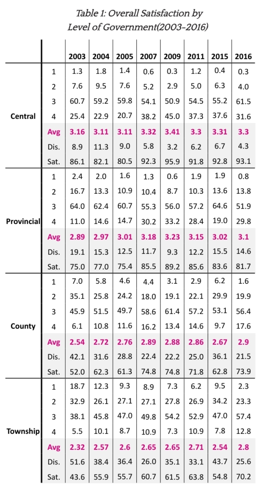 Further, you again pretend “very satisfied” is the same as overall approval. You’re lying. The actual approval rate at the Township level is 70.2%, which you either think is “abysmally low,” or are intentionally trying to twist very satisfied into satisfied in general, which is coincidentally a propaganda tactic used by Western Media, focusing on one aspect and omitting the more important data. Here’s the actual table: