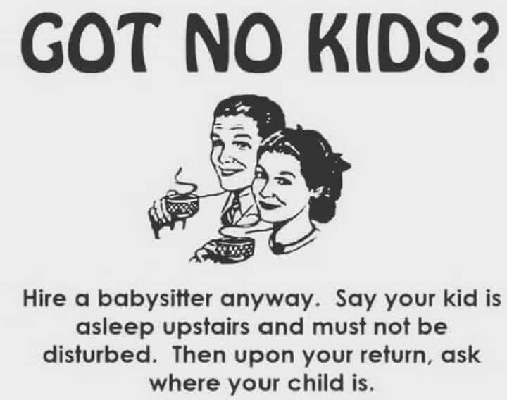 minus-squareexplodicle@sh.itjust.workslinkfedilinkEnglisharrow-up1·8 months agoOr just do it while your actual kid is staying with your parents