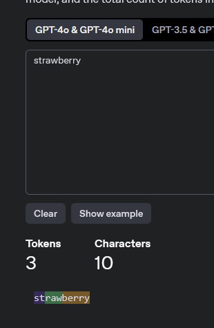 Current LLMs input, and output tokens, they dont ever see the individual letters, they see tokens, for straberry, they see 3 tokens: