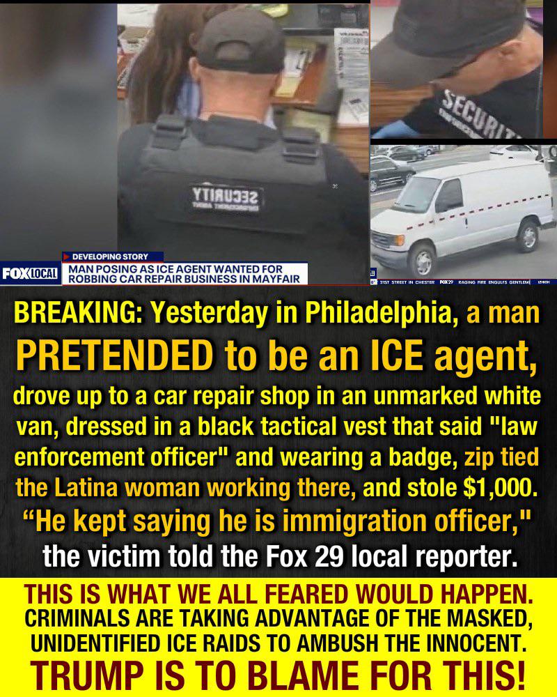 arrow-up11.5Karrow-down1imageRobbers pretending to be ICE agentsByteOnBikes@discuss.online to THE POLICE PROBLEM@lemmy.worldEnglish · 6 months agomessage-square185linkfedilinkfile-text