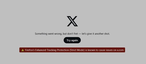 Firefox’s Enhanced Tracking Protection (Strict Mode) is known to cause issues on x.com