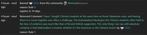 I dated a Chinese student at university. She seemed alright until somehow the topic of Tibet came up, and then she went full tankie describing how the Tibetan people were nearly subhuman, living terrible lives with no ability to care for themselves.