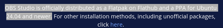 And since I’m not on Ubuntu, I use the Flatpak version to get OBS as intended bey the OBS developers.