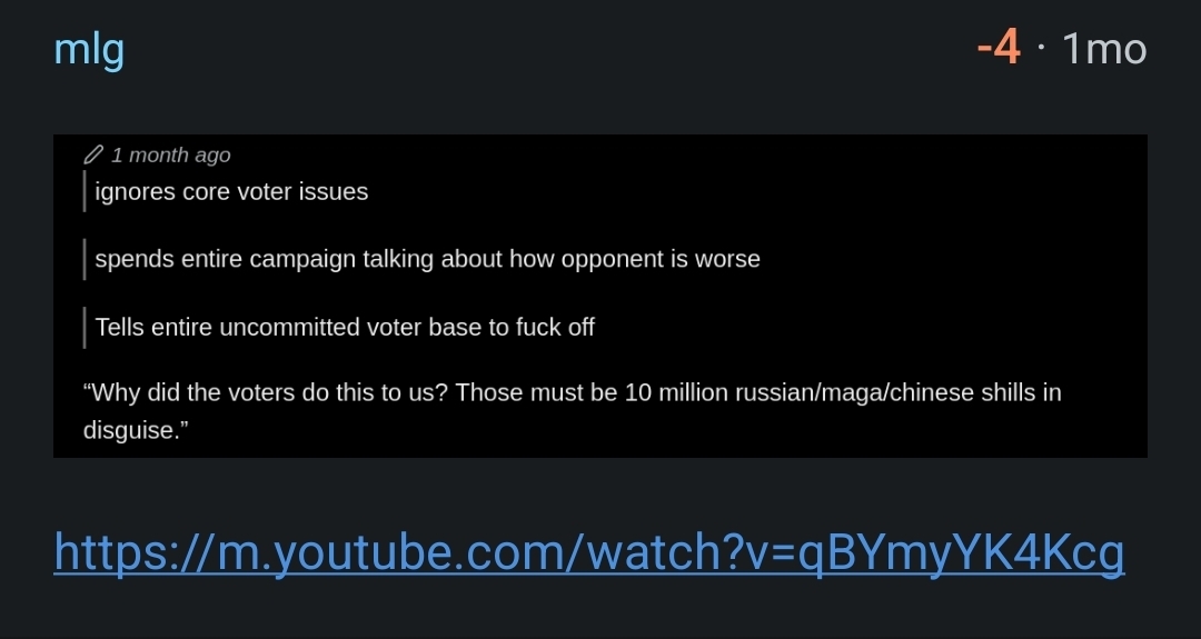 Running a feckless campaign that refused to break with Biden’s admin on genocide is why we got this living hell. And running the most unlikeable woman in the country in 2016 is what made 2024 even a possibility.