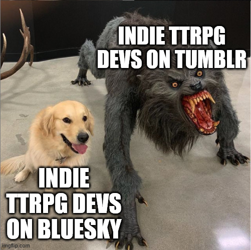 meanwhile indie ttrpg devs on Bluesky constantly promote their work and inform of sales of their products. I found many cool games through bluesky, meanwhile nove through tumblr.