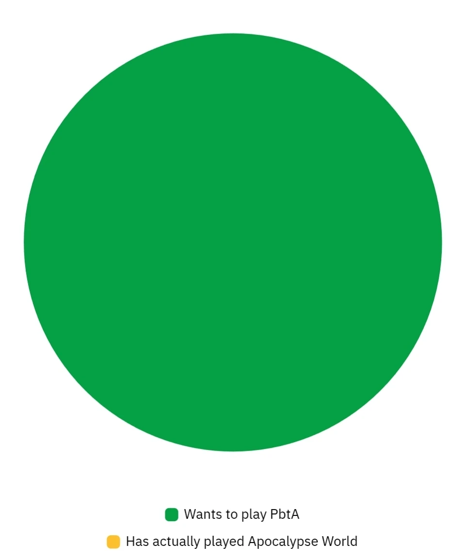 I played two PbtA games but neither was Apocalypse World. Which is weird sicne I ehard it holds up and has no controversies, unlike Dungeon World.