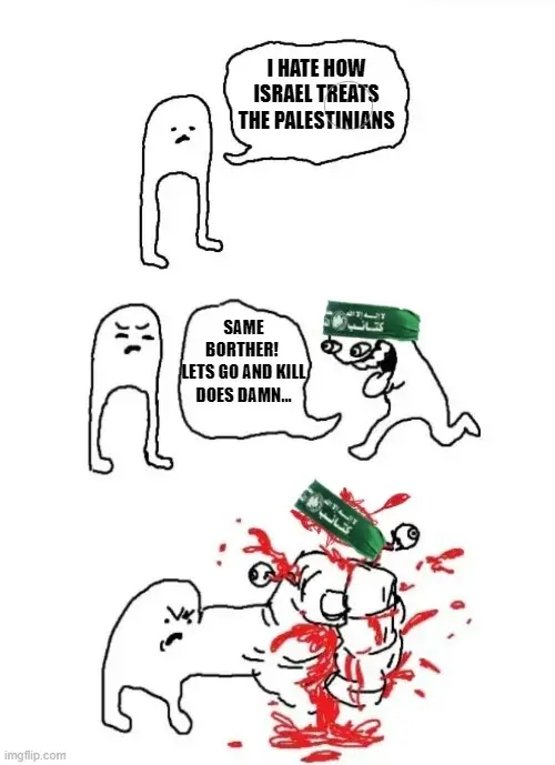 what i have said is that if you want to have lasting peace, you need to have both likud and hamas out of the picture. note: i’m not saying who should do it, or how, or when, or if it even will happen at all. that’s because there’s plenty of people whose plans and incentives don’t include lasting peace and actively work against it, for example likud and hamas. and i’m not predicting anything, i’m just saying that shit’s fucked and whatever happens now, it won’t be pretty