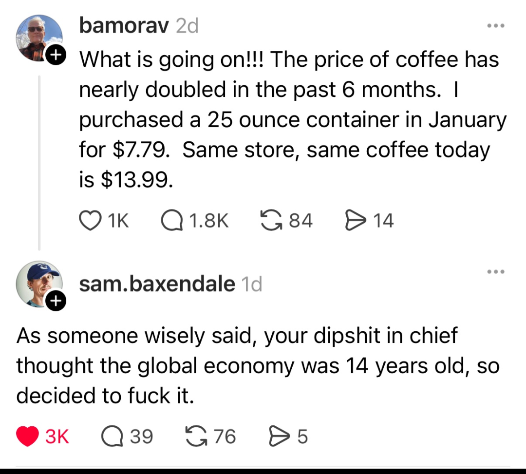 Competition, same thing that normally limits prices. You don’t need to “blame” tariffs to raise prices — you can just raise them. If you’re the only vendor of coffee in the US, you can increase prices without losing sales. But I’d expect that anyone who selling coffee or another item that can be stored and is going to have a significant increase in tariffs will try to get stock in before that. Raise prices and you lose sales to other parties.