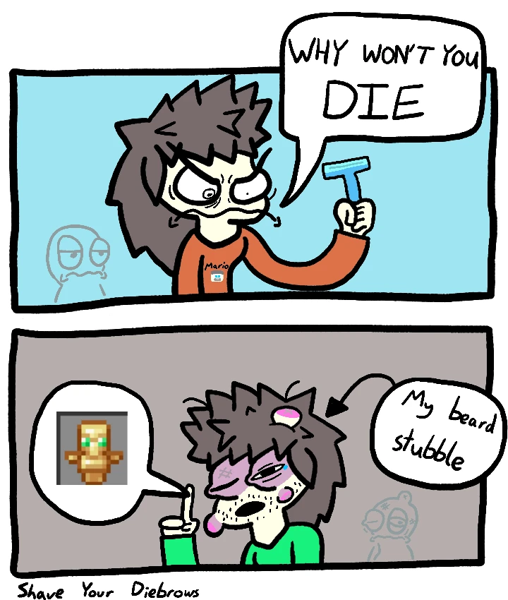 Her beard stubble used a Totem of Undying, an item from Minecraft that prevents you from dying whenever you take lethal damage.