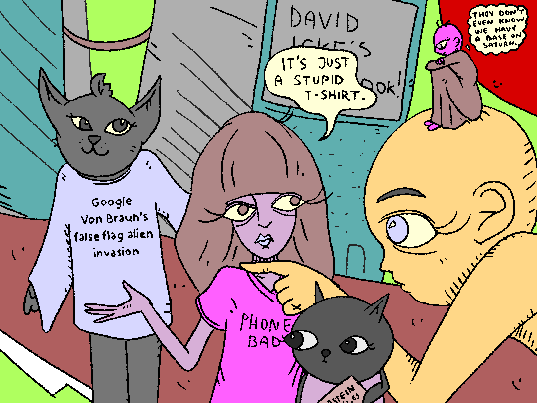 Hey uh, I like your art, I even bought your stickers, but what’s with the “David icke’s new book” thing in the background?