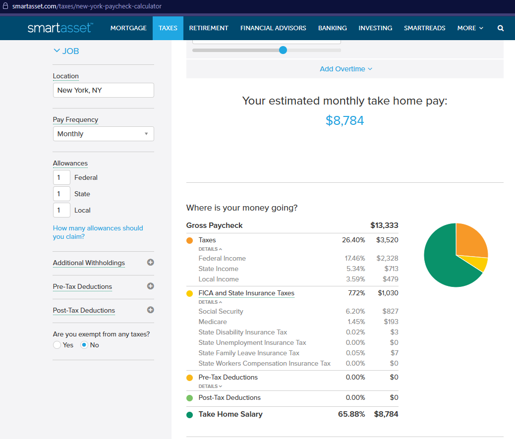 Lets use NYC as an example of a HCOL area. Here’s what that looks like for take-home pay: