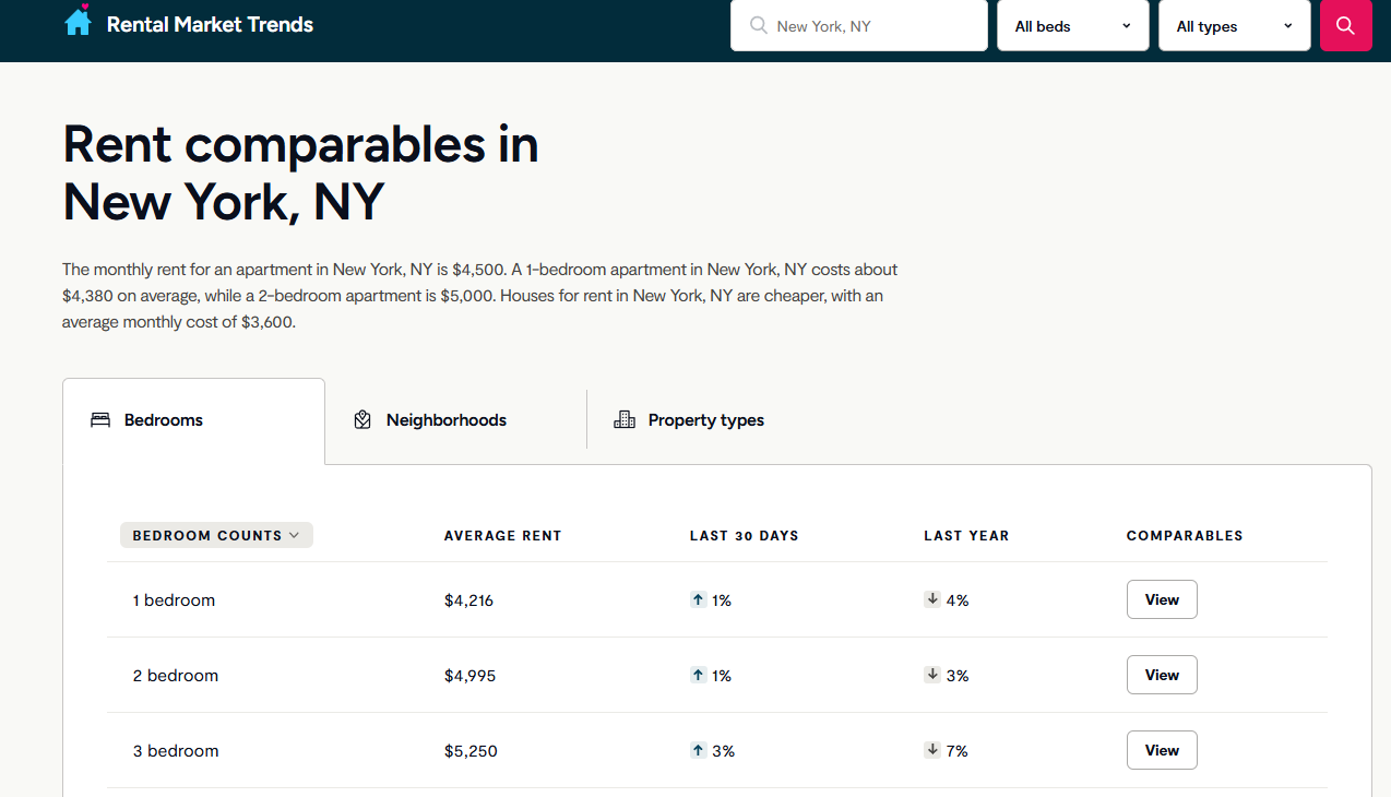So a person needs to house themselves. Lets look at NYC rents. Here’s median prices: