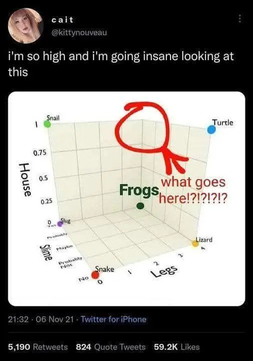That graph is also missing a data point at [Slime, Legs, House] = [No, 0, 1].