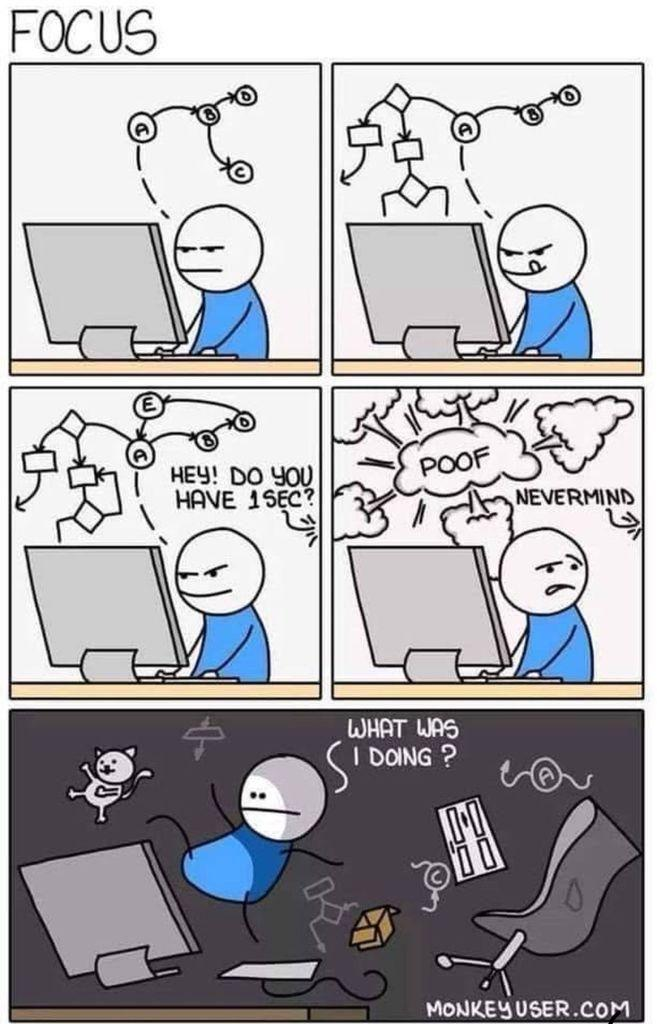 I whiteboard things after the third interruption. My coworkers know if they interrupt me while I’m whiteboarding things, they are going to get sucked into the thought, and their question is moot. (Unless it relates to food)
