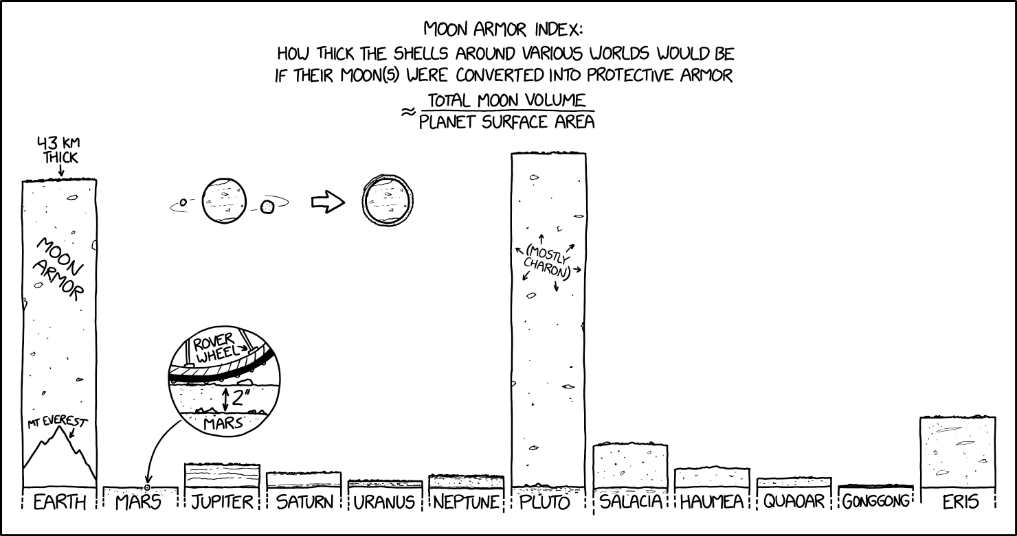 It’s the largest relative moon (fifth largest in absolute terms) of any planet (sorry Pluto) and is more than a quarter as large as the earth itself. It’s also relatively further from the planet than most moons in the solar system.
