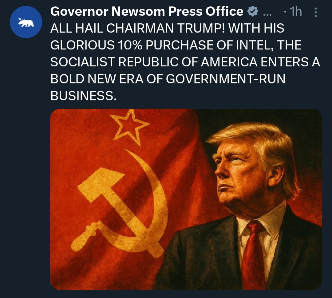 Fuck Newsom, but his twattering is apparently amusing to some of my very dejected friends who’ve been in a rut post-2024 election, and that’s worth something. Hopefully the combativeness spreads.