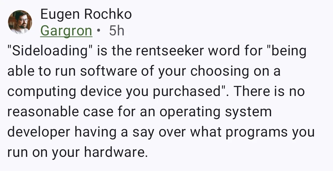 As you can see, it’s one method at a time, slowly but surely, until Google fully controls the ecosystem. The intention behind that is pretty clear: They don’t want people to have AdAway and Revanced, they want money and user data. And they also want you to login to the PlayStore, get hooked on their stupid daily points challenges and spend your hard-earned money on virtual crap.