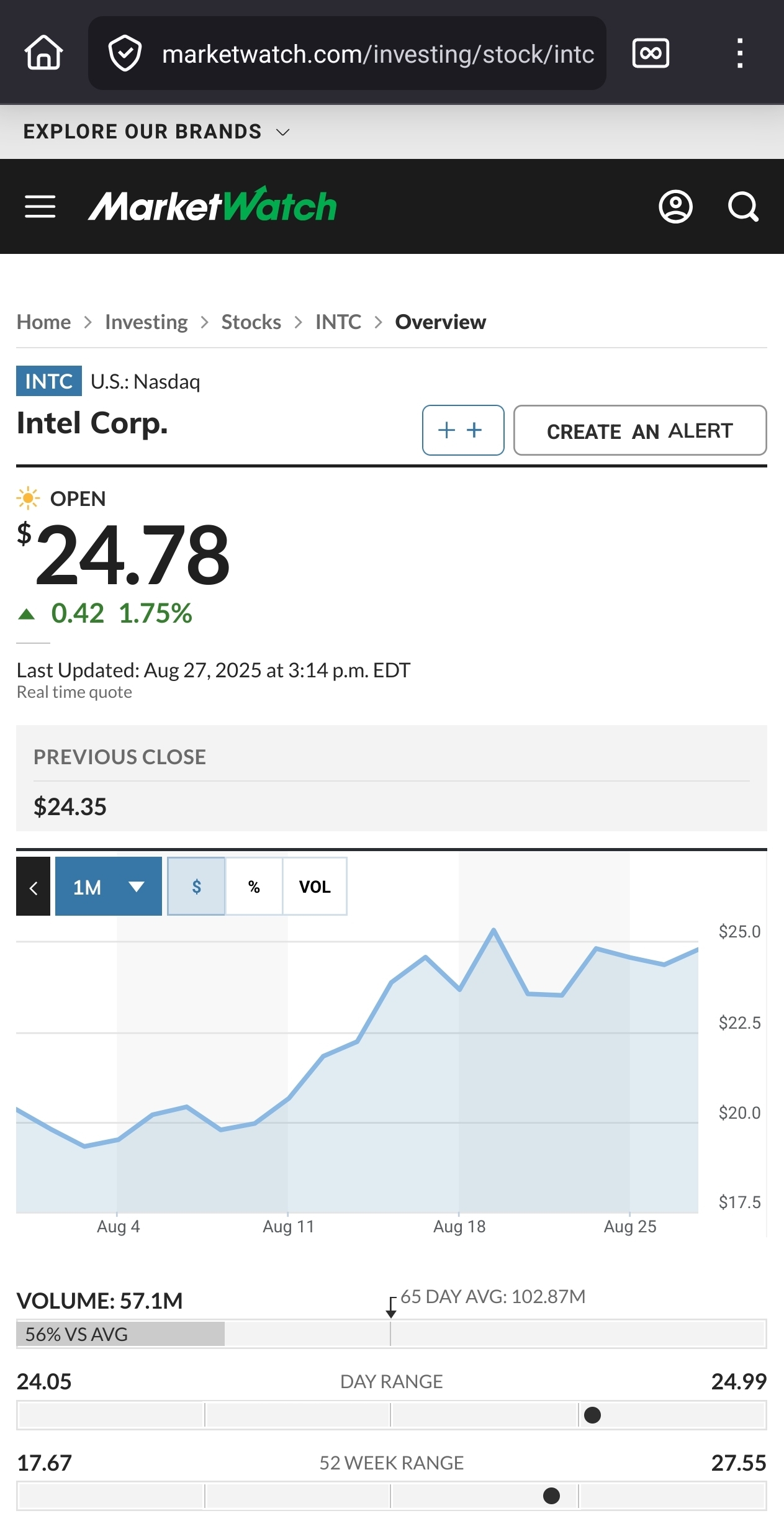 Who is writing this article? The stock’s been up for the day, the week, and over the last month?