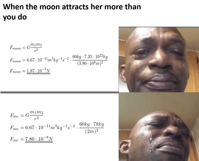 In other words, if you’re really deep inside her, her attraction to you will be stronger than to the moon.