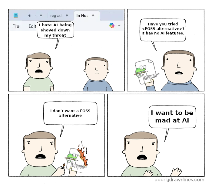 My dude, you can be mad at AI and use a FOSS alternative - best of both worlds