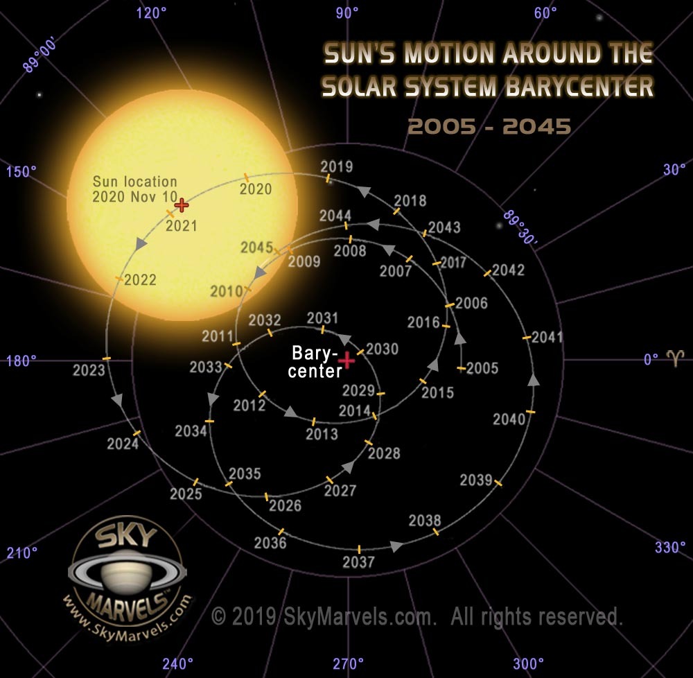 So the Sun is wobbling arround, because of the 3 giants. Fascinating.