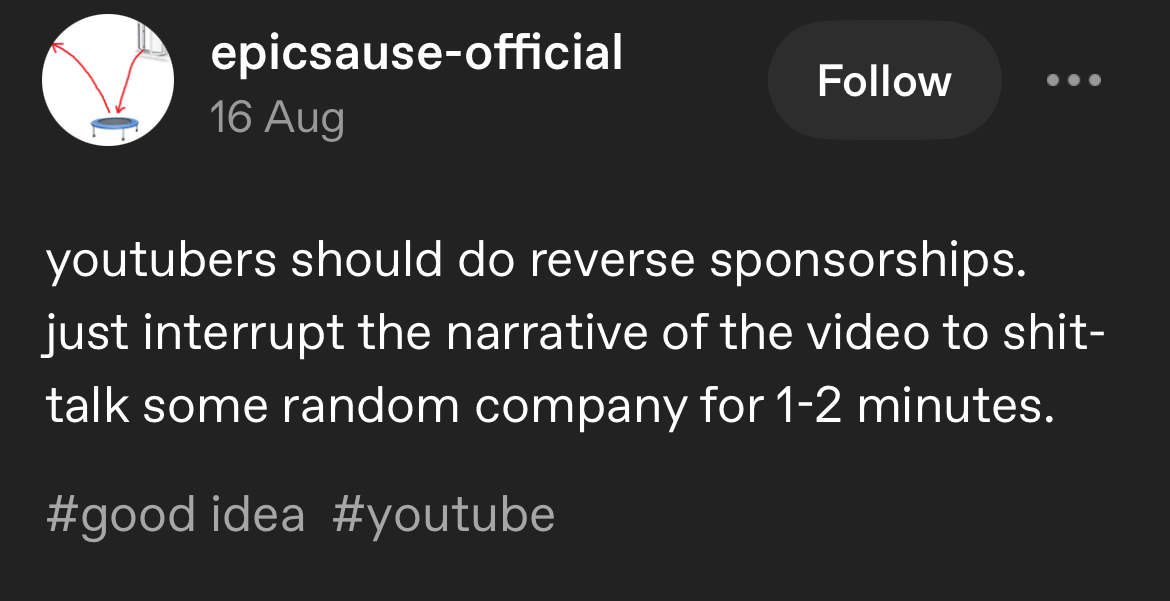 I will say this about regular sponsorship - and if you’re a company bribing Youtubers to shill your shit, take heed: