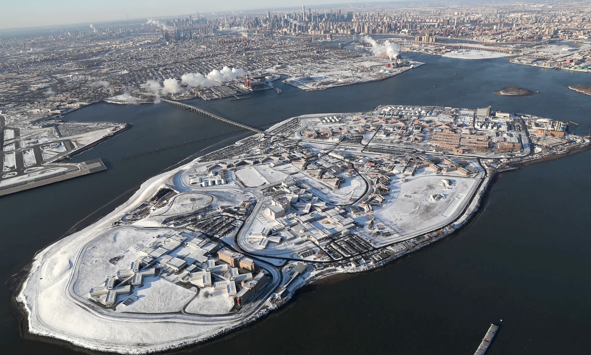 This is a photo of Rikers Island, New York City’s biggest prison. The actual size of a facility interning ten thousand people.