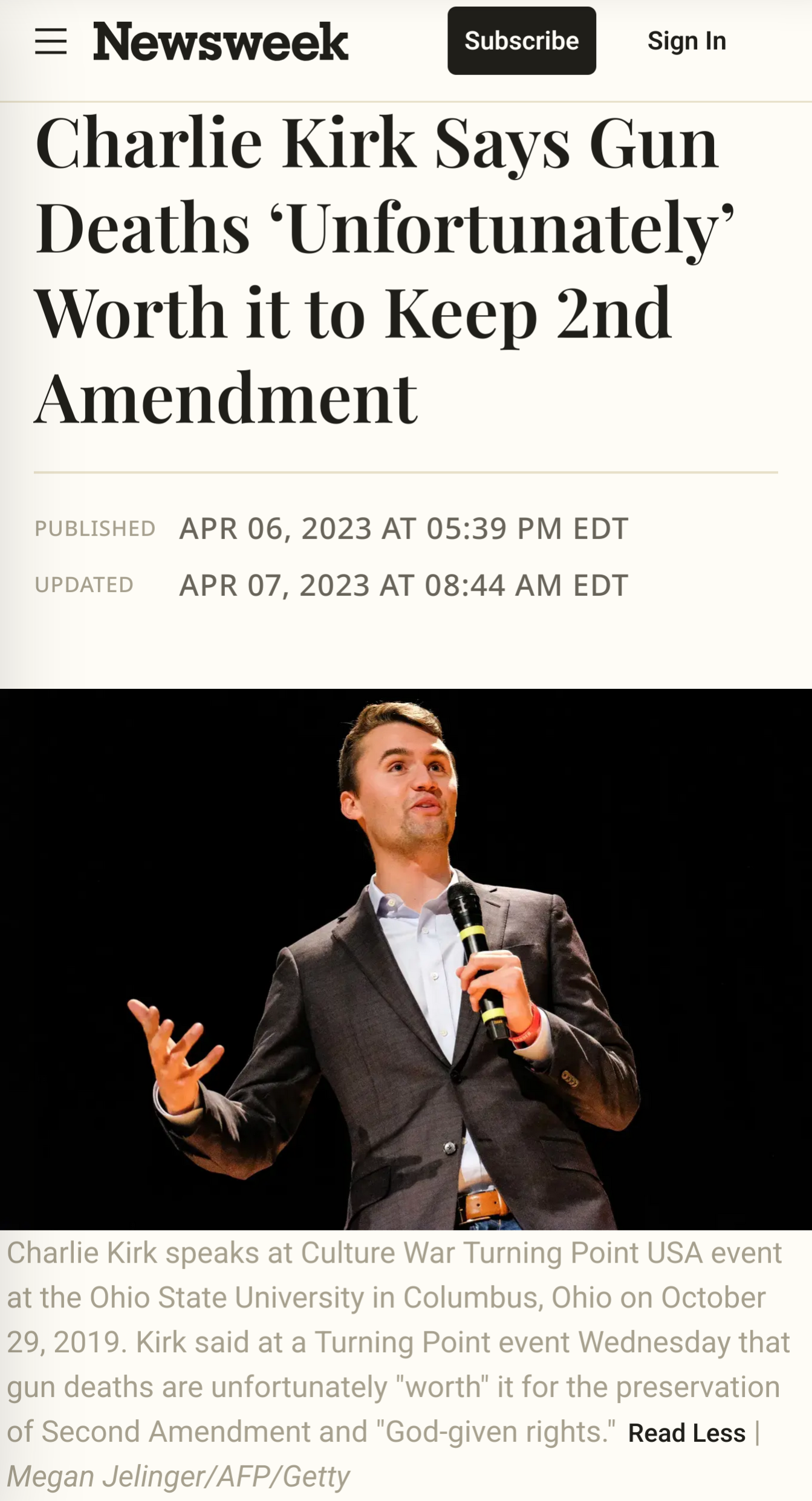 “gun deaths and school shootings are incredibly unfortunate but a necessary thing to help ensure our gun freedoms “ - Charlie Kirk