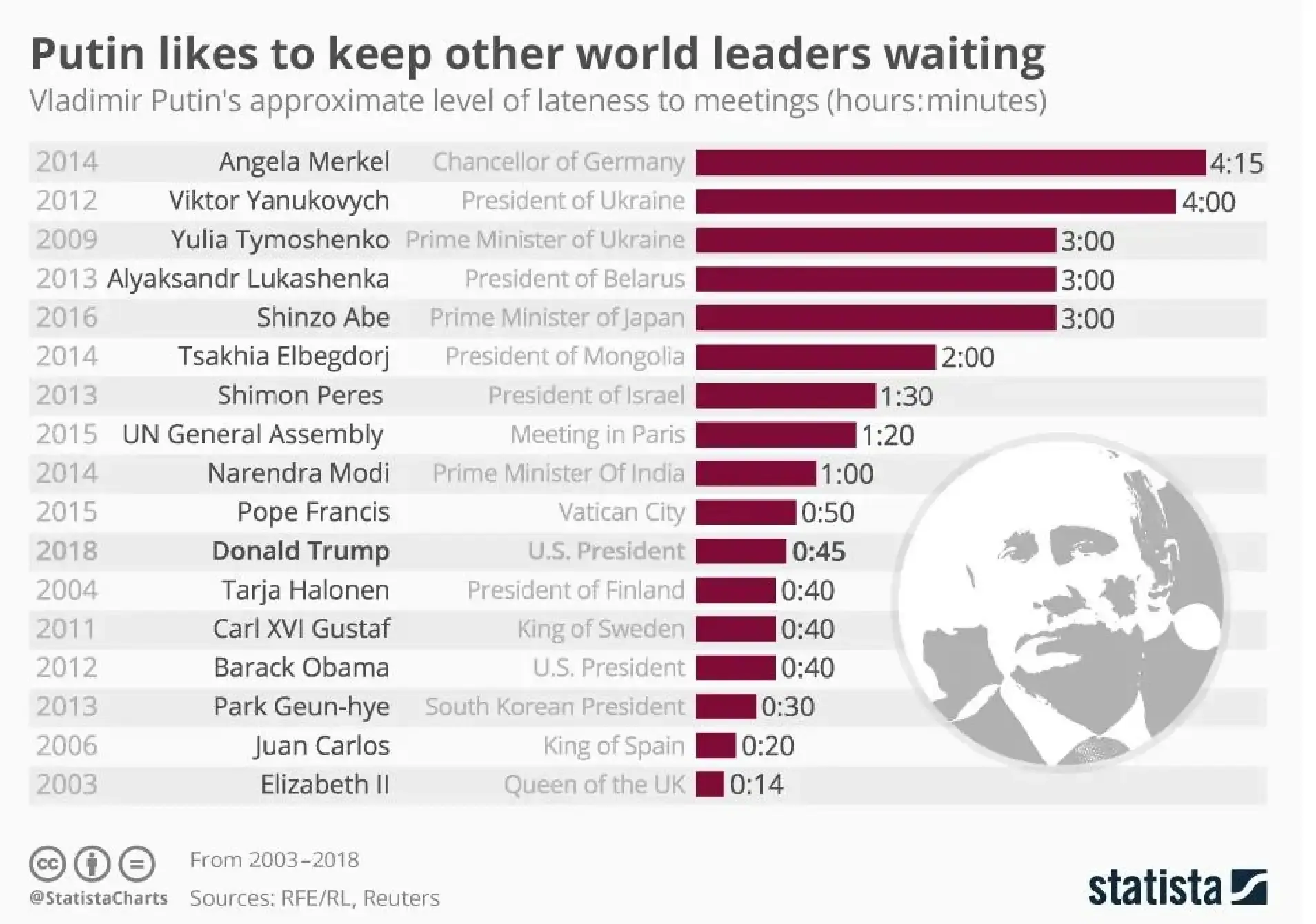 zoe @infosec.pub to Europe@lemmy.ml · 2 years agoPutin likes to arrive late to meetings with world leaders as a power move, making them wait for hours to show "he's in charge." Interestingly, Biden insisted on arriving later than Putin when they metimagemessage-square2linkfedilinkarrow-up10arrow-down10