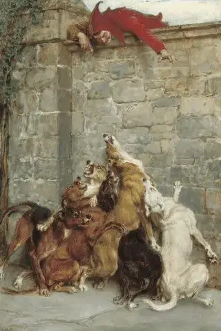 Those dogs are well within reach of chompin his smug little fuckin face