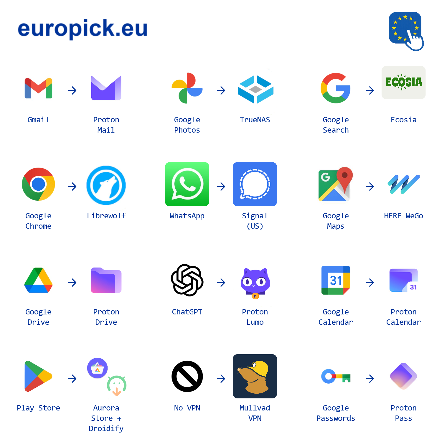 For AI Language models, I have been happy with Mistral’s Le Chat. For VPNs, use NordVPN. Both are great European alternatives for US-based tech giants.