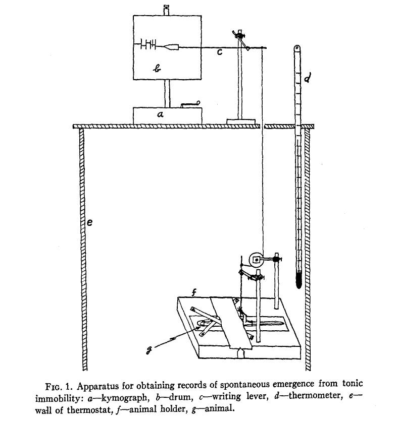 I found a paper from 1928 titled “On The Mechanism of Tonic Immobility in Vertebrates” written by Hudson Hoagland (PDF link).