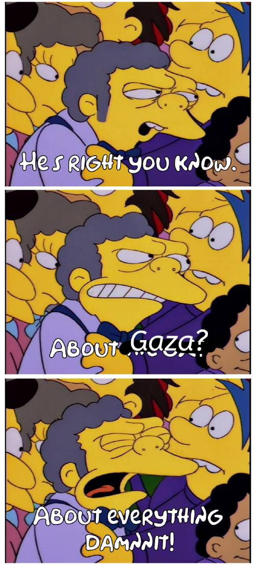 So does this mean he’s gonna stop with the “Israel has a right to defend itself” bullshit? I swear if I hear him say that again I’m gonna vomit.