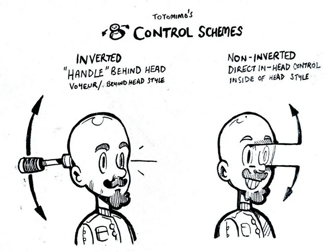 The above principle works for third person, too - if you’re conceptualizing moving a “handle” behind the camera rather than being in the camera itself, it’s inverted.