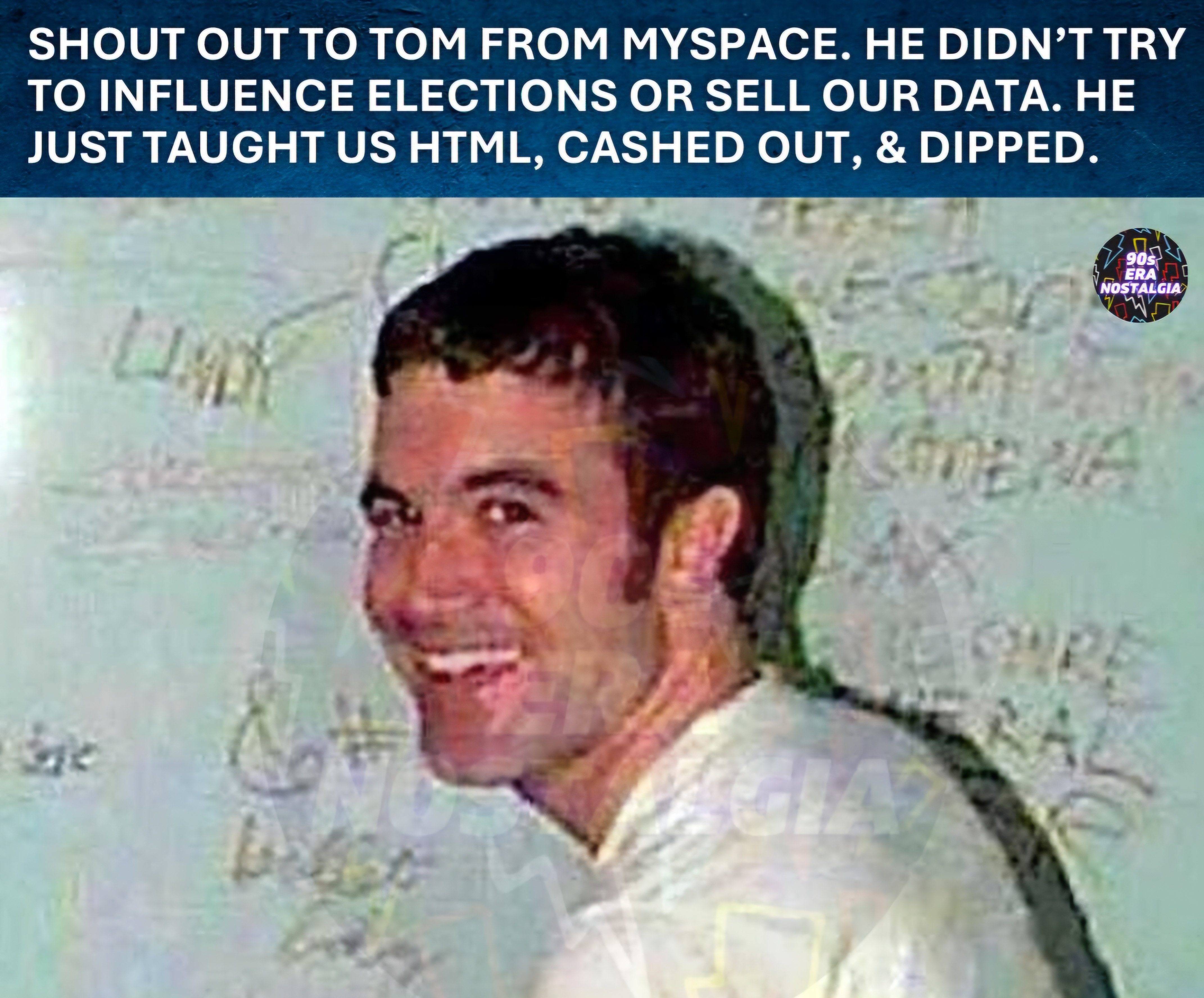 I appreciate him but MySpace definitely did collect data. Props to him for his photographer career and doing his own thing though