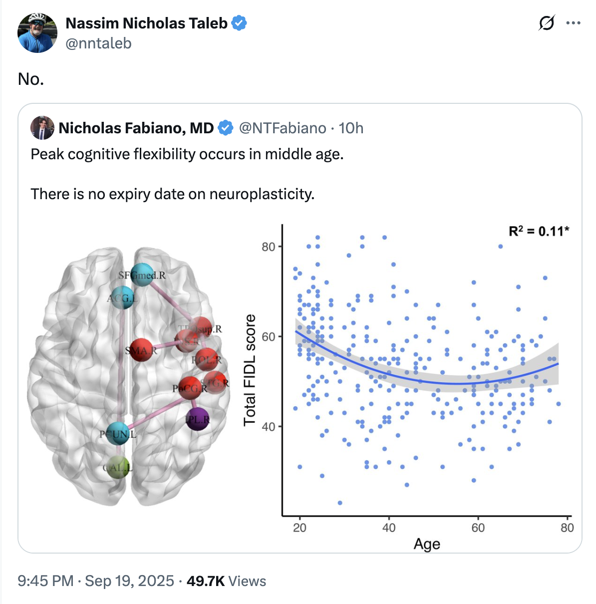 Wait so… his own brain isn’t antifragile (neuroplastic) enough to consider the idea that some other people his age have brains that actually are antifragile (neuroplastic)?