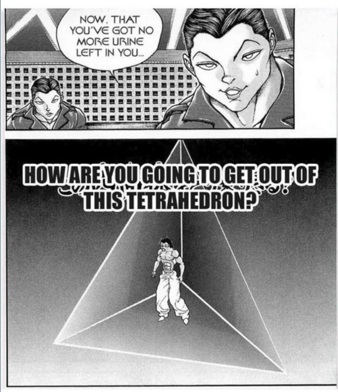 You know you’ve reached the peak of strength when you force your dad to eat your imaginary dinner. This is referencing a real Baki scene.