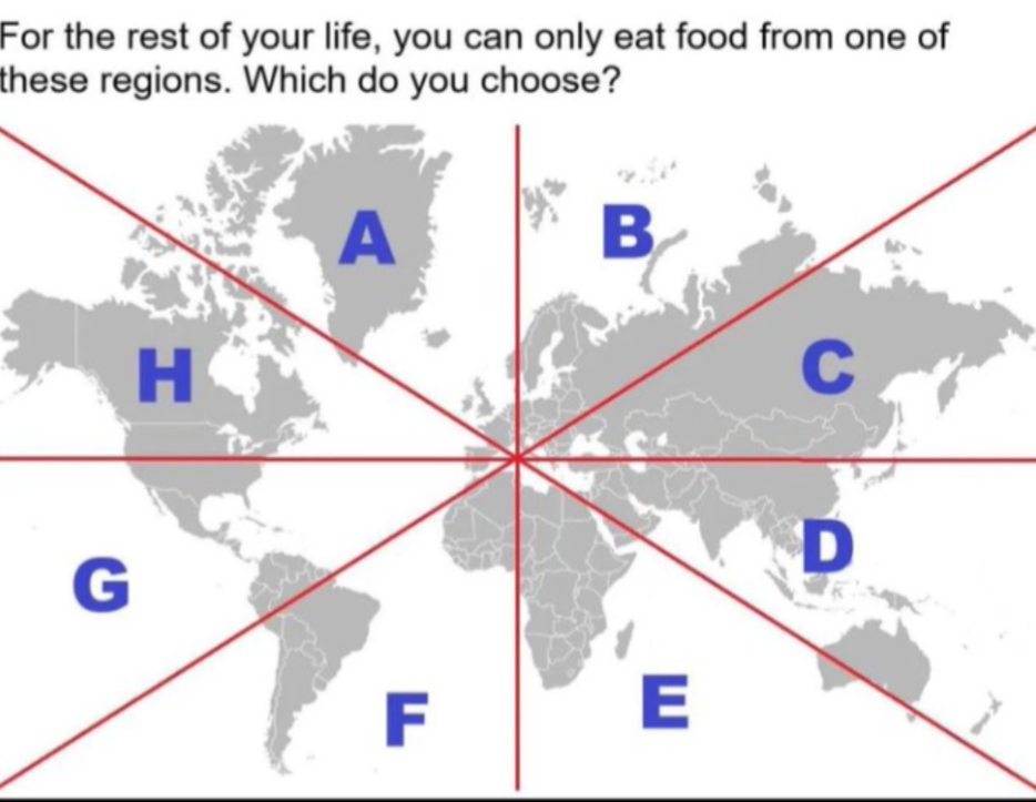 (I’m Indian so there’s obvious bias. But even if Indian and Bangladeshi food were removed, I’ll still choose D. I’ll be a little tempted by G because of Barbecue, but Korean barbecue is pretty great as well.)