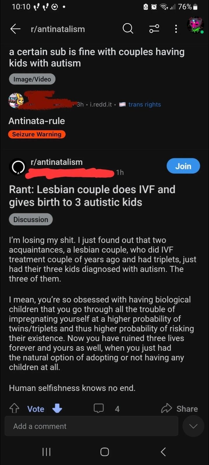 arrow-up1-1arrow-down1imageThe Antinatalism subreddit basically promoting eugenics against autistic peopleStriker@lemmy.world to Autism@lemmy.worldEnglish · 2 years agomessage-square102linkfedilink