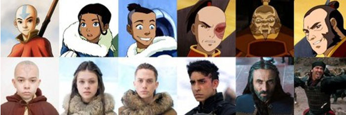 Basically the original heroes were vaguely Tibetan (Aang) or dark-skinned Inuit, but for the movie (that doesn’t exist) they quite consistently color coded the good guys as white and the bad guys as darker skinned; the total opposite.