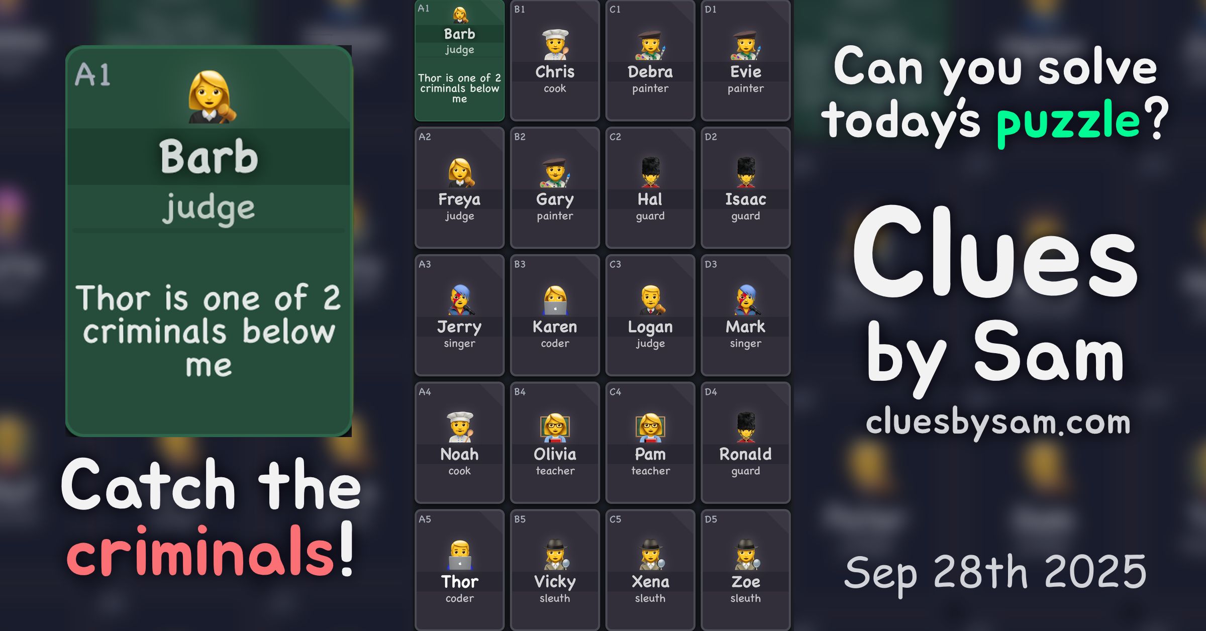I solved the daily Clues by Sam (Sep 25th 2025) in less than 26 minutes