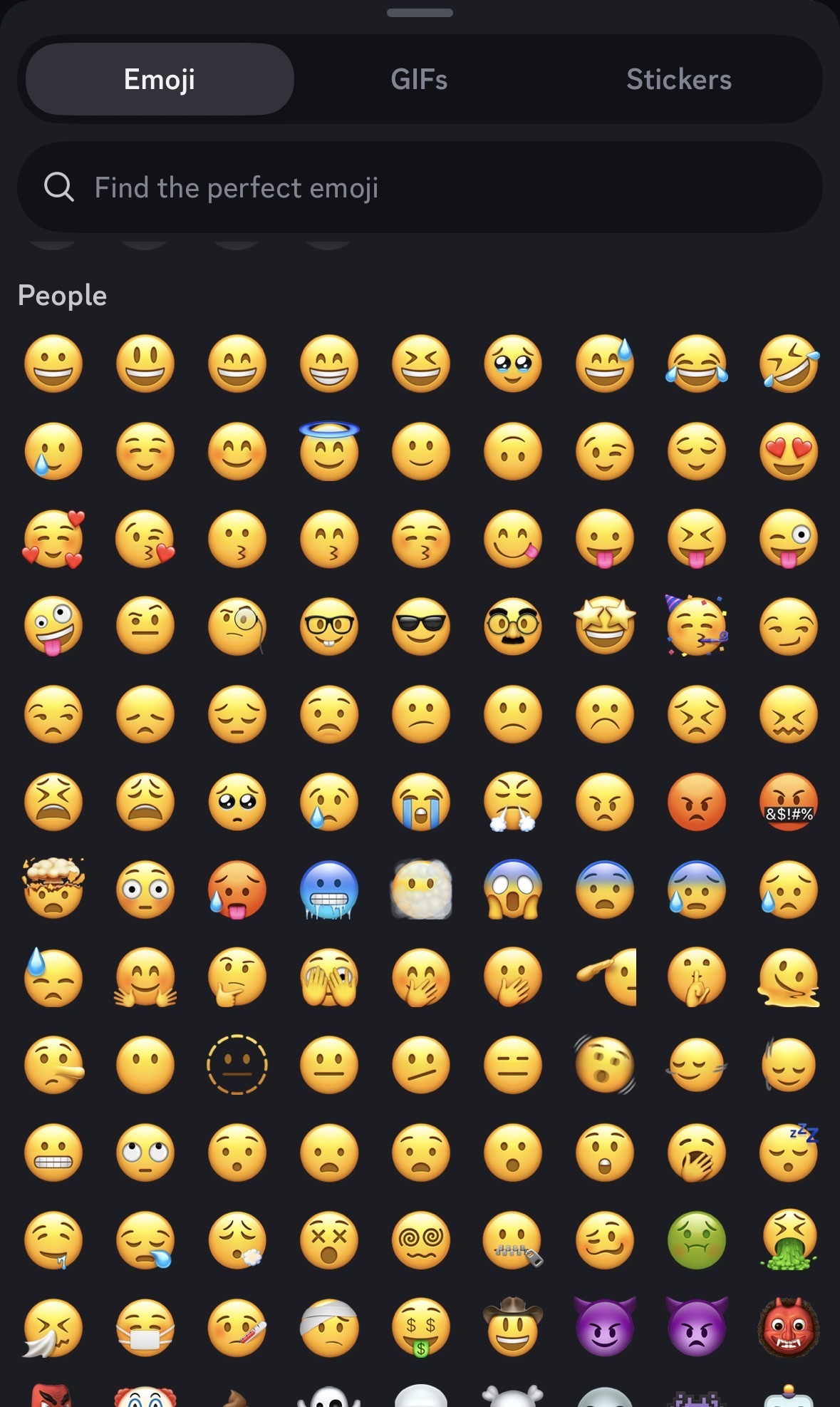 Around the bottom two rows, look closely between the emoji, little slivers of yellow poking through. Appears to be a bug and not usual presentation