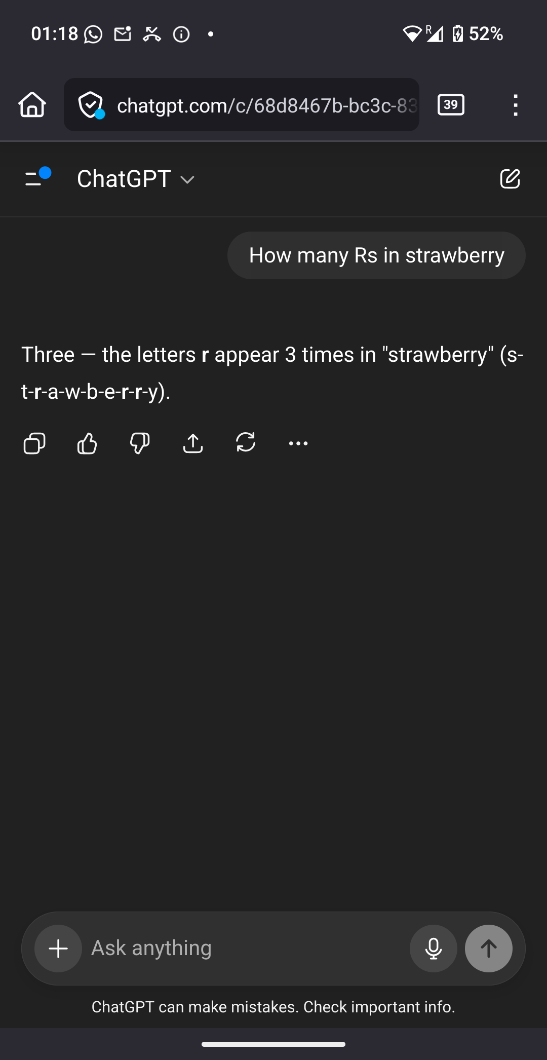 I’m sure there’s a mathematical or programmatic logic as to why, but seeing as I don’t need LLM’s to count letters or invent new types of pseudoscience, I’m not overly interested in it.