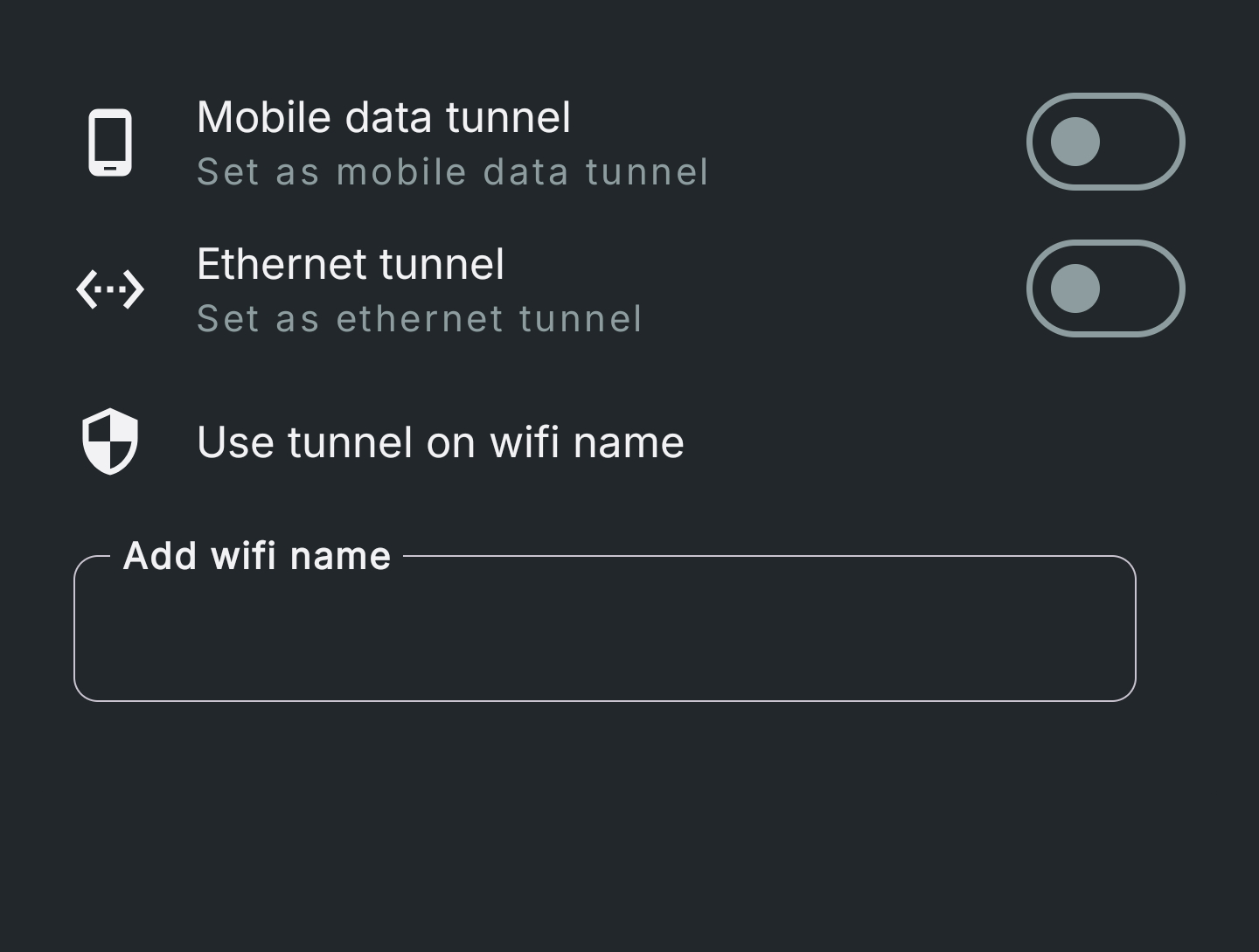 I use WG tunnel, but the “turn on under X condition” doesn’t work for me.
