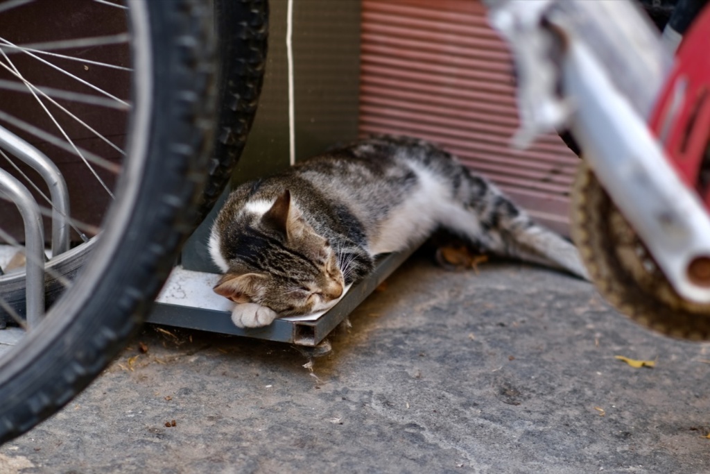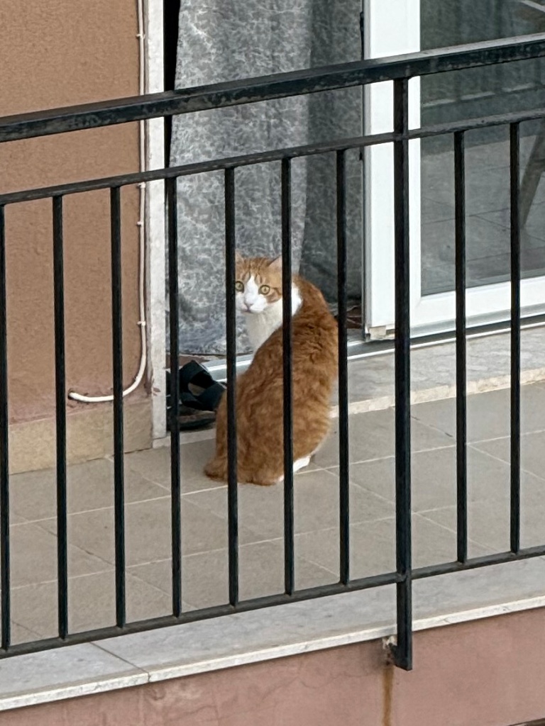 That orange cat is hard looking at you, wondering why you are photographing them lmao