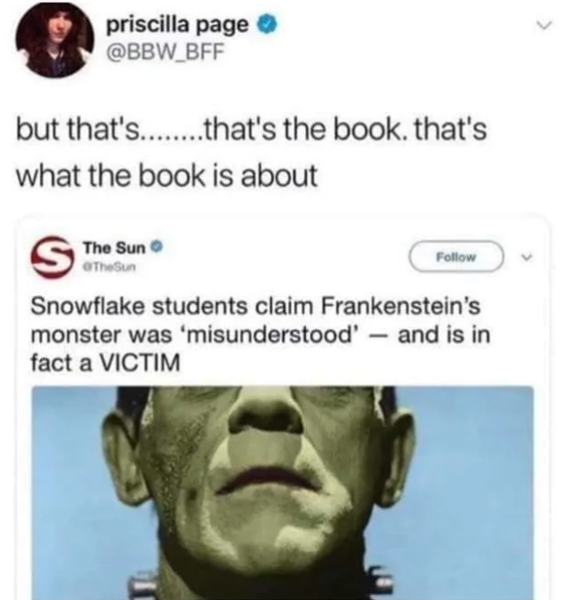 https://www.thesun.co.uk/news/5732932/snowflake-students-dub-frakenstein-misunderstood-victim/