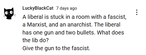 Oh man, don’t even get me started on liberals’ kurzgesagt. Oh ho! Oh we’d be here all day!