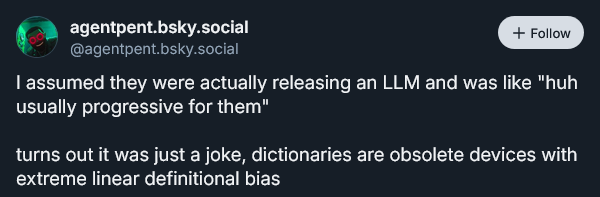 The dictionary doesnt tell me how wise and smart my misinterpretation of a basic idea is and then tells me im right, weird AI bro.