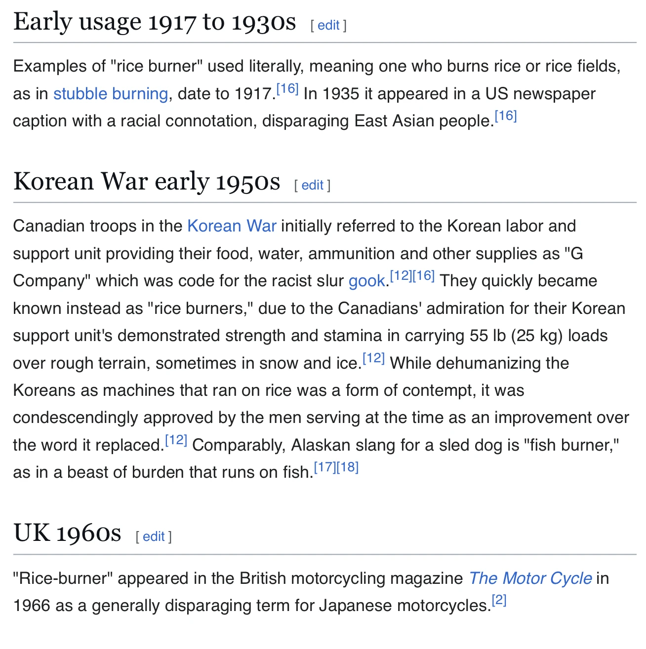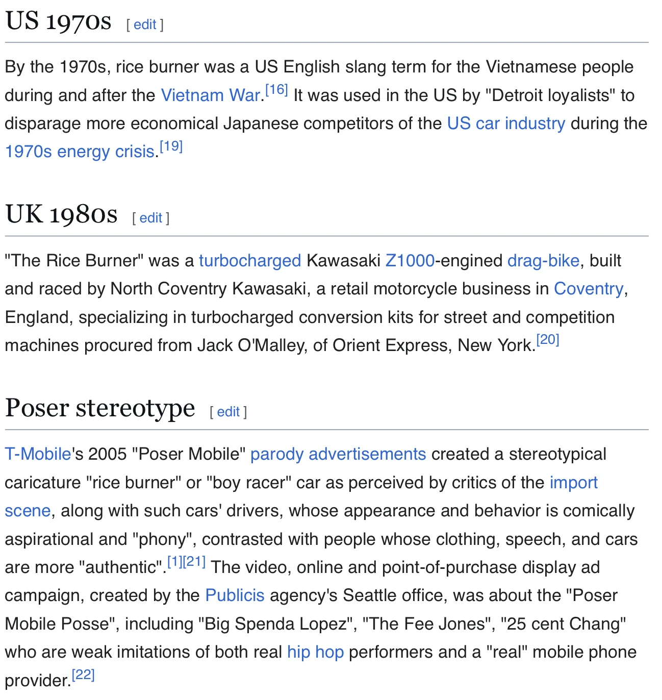 Oh and since you’ve responded often rejecting opinions just because “its a white person claiming its not racist” let me ask you, how many Japanese people (since the old meaning of the word was specifically targeted at the japanese) do you know take genuine offence to the word? Because funnily enough my Japanese friends in the car scene love calling things riced out