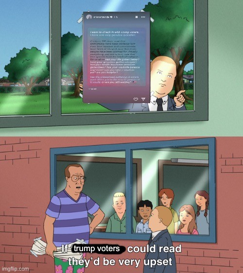 Stop condescending to Republicans. I know it pains you to think that Nana has a hateful side and would prefer not to have to drink from the same water fountains as those “darkies”, but as much as she loves you, she also hates someone else. She hates them enough to turn your future and all the generations that follow over to fascists who might just murder or enslave them. Even more importantly, she will do it again.This is factually incorrect. If you want more information as to why, I’d recommend looking into news deserts. They do not have access to the same information we have, largely because local newspapers have died completely. I’d also recommend looking into the number of local news stations across the U.S that are owned and operated by Sinclair and Nexstar, as for many people they are their only local option for tv news. I don’t even really wanna get started on social media algorithms, but it is the main place these underserved communities get their news from now, and I shouldn’t need to explain the issues of that to a Lemmy user.